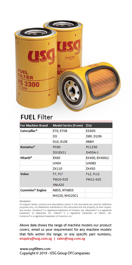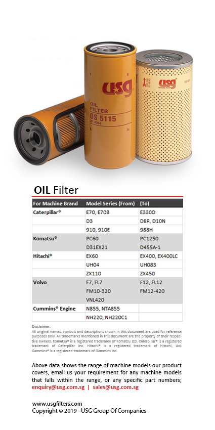From 30 over years of experience in supporting the maintainence of heavy machinery used in various industries with quality filtration products to extend the lifespan of their machinery assets, the team behind USG® filter is constantly exploring cost effective solution to its clients. We continue to enhance the filtration system to provide high level of purity in fuel and oil for engine system to operate at its maximum efficiency.