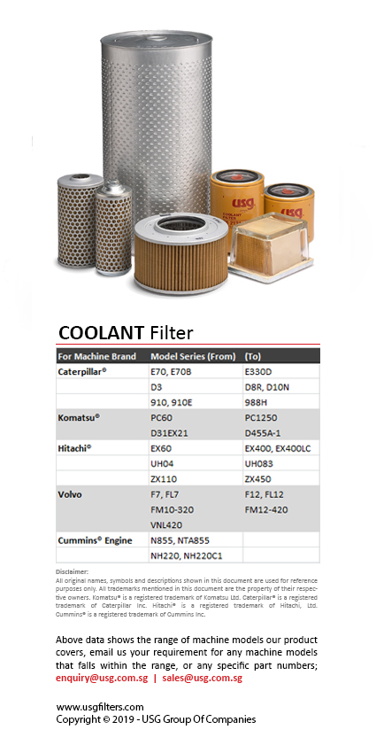 Over 30years, USG® Filter, a trusted brand fulfilling your filtration need for heavy machinery used in construction, quarry, mining and other industrial operations.
